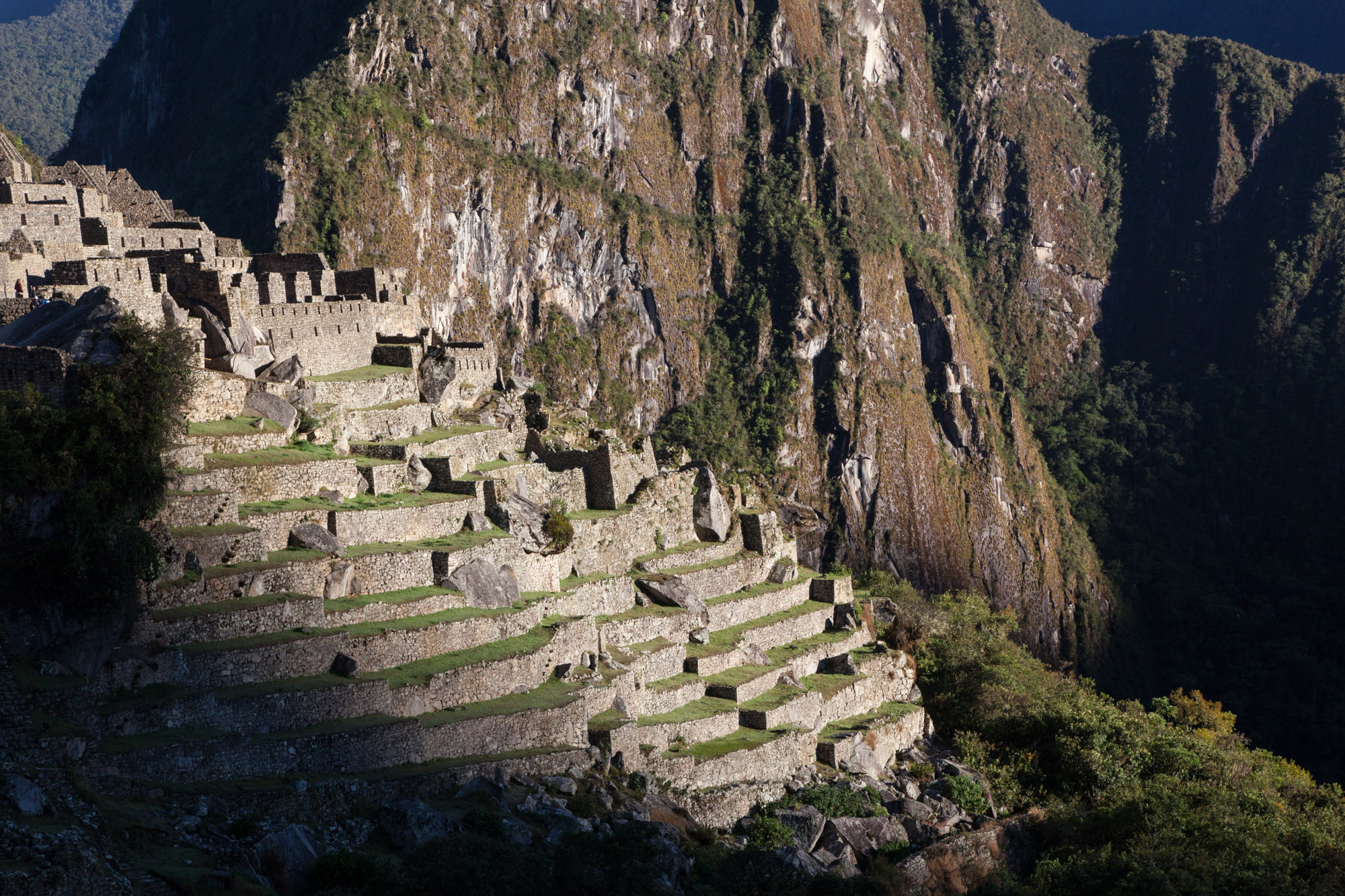 A 5h00 du matin, les autorités ouvrent les portes et contrôlent les billets d’entrée. S‘en suit une ascension d’une heure par des escaliers en pierre : 500m de dénivelé positif au pas de course pour arriver dans les premiers à l’entrée et profiter du lever de soleil sur les terrasses du site inca. Nous arrivons complètement en nage en haut. Les premiers bus arrivent en même temps que nous et débarquent leurs touristes bien frais, eux.