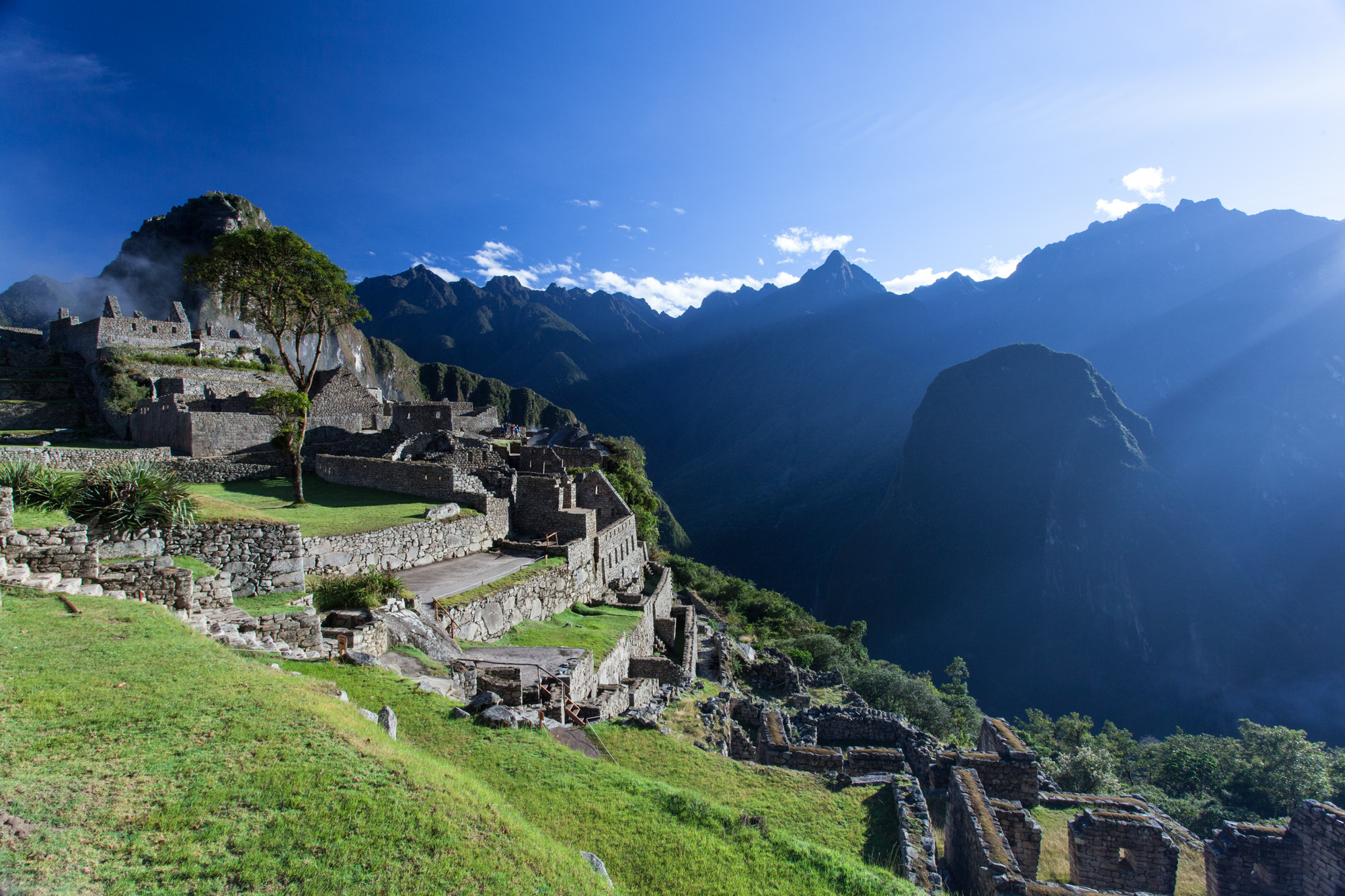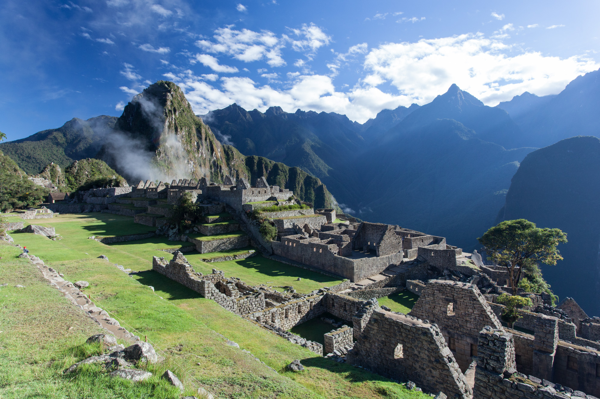 Par ailleurs, Machu Picchu est construit au dessus de la rivière sacrée Urubamba, à l’endroit précis ou le cours d’eau prend la même forme que la Voie Lactée. Le village lui-même est une succession de temples, de places et de maisons en pierre qui étaient couvertes de toits de chaume. Ces chaumières m’évoquent d’ailleurs plus les côtes bretonnes et normandes que les classiques architectures incas. Il devait y faire bon vivre. Les terrasses servaient à la culture du mais, du quinoa et de la pomme de terre. Nicolas parvient à capturer les premiers rayons dorés sur l‘herbe verte des terrasses. Des nuages remontent de la vallée et s’accrochent aux pentes du Huayna. Ambiance…