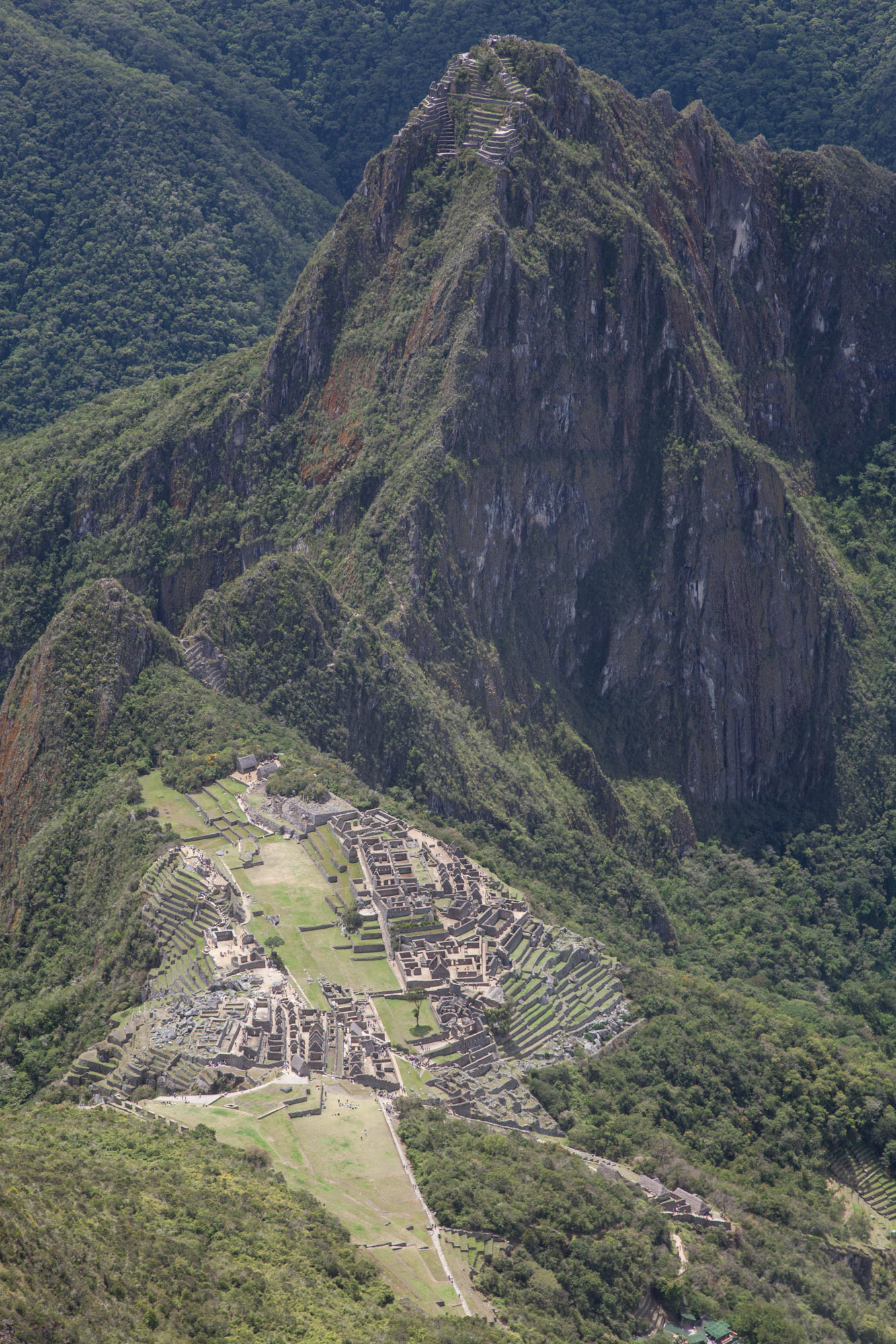 Le site du Machu Picchu est véritablement exceptionnel. Moins par ses constructions (maison, terrasses, temple…) que par son emplacement qui a fait l’objet d’une longue étude par les prêtres et ingénieurs de l’époque. Machu Picchu apparait comme une cité suspendue dans le ciel. Elle nous rappelle la cité de Laputa dans le film de Miyazaki, Le Chateau dans le ciel. La ville est construite sur une crête à 2500 m, entourée par des montagnes sacrées: le Machu Picchu, la “vieille montagne” qui a donné son nom au site inca, le Huayna Picchu, la “jeune montagne” que l’on voit sur les photos derrière le village.
