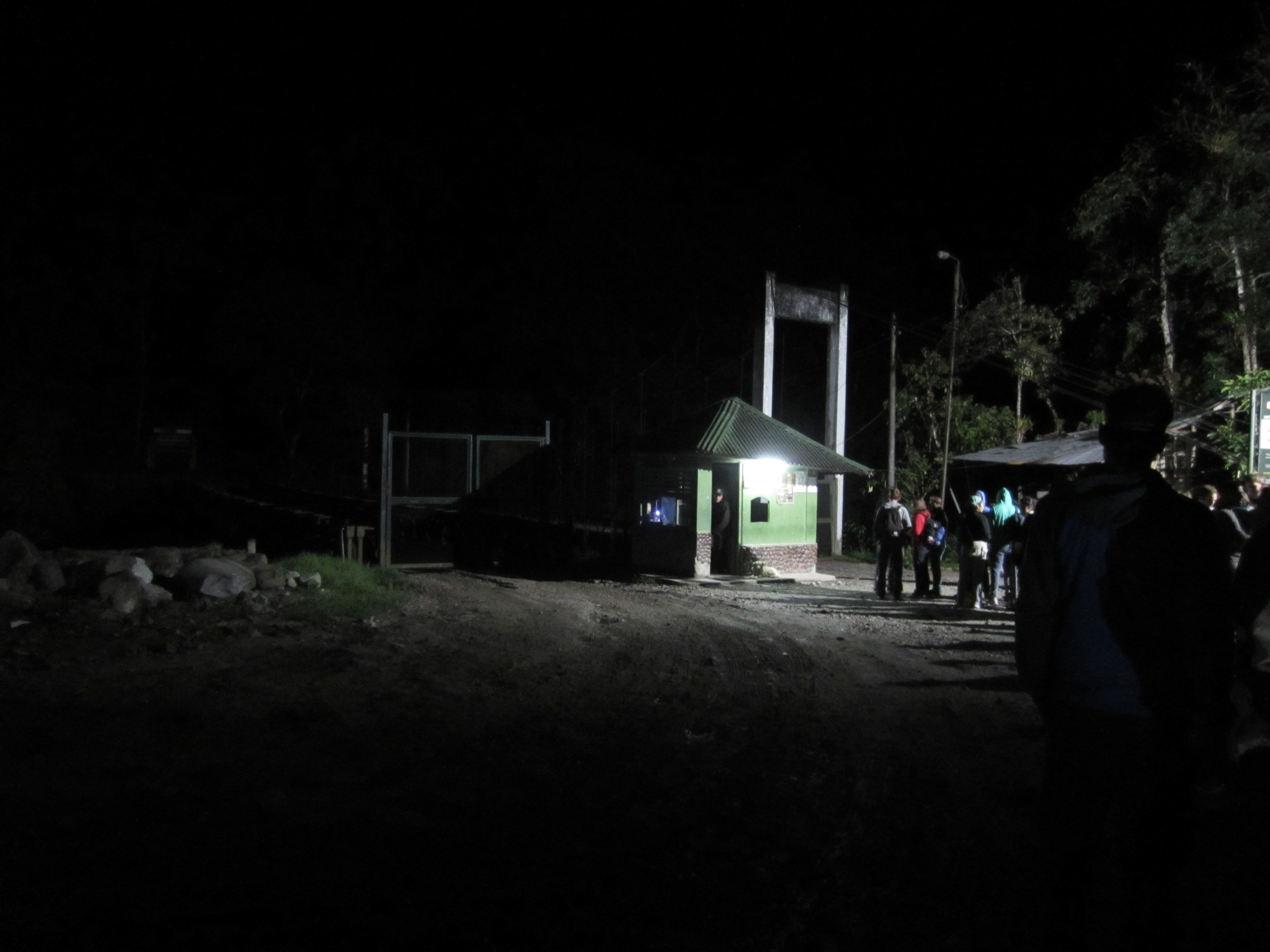 Pour le D Day, nous nous levons à 3h30 du matin. Nous prenons, éclairés à la lampe frontale, la direction du pont qui offre accès au Graal: le chemin d’accès au Machu Picchu. Une longue file de candidats attend déjà patiemment devant l’entrée du pont.