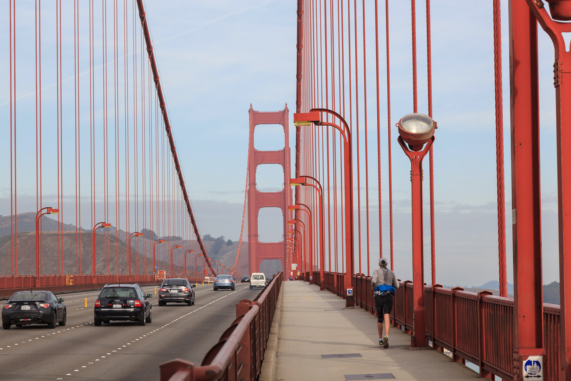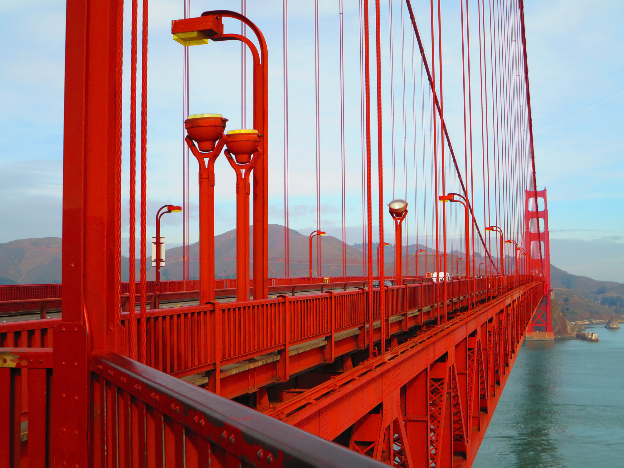 Le lendemain, nous nous rendons en bus au pied du Golden Gate, le symbole de la ville. Ce pont a été construit de 1933 à 1936 pour rejoindre les deux côtés de la baie de San Francisco. Il est splendide au soleil ou jouant avec les nuages qui couvrent souvent le haut de ses piles.