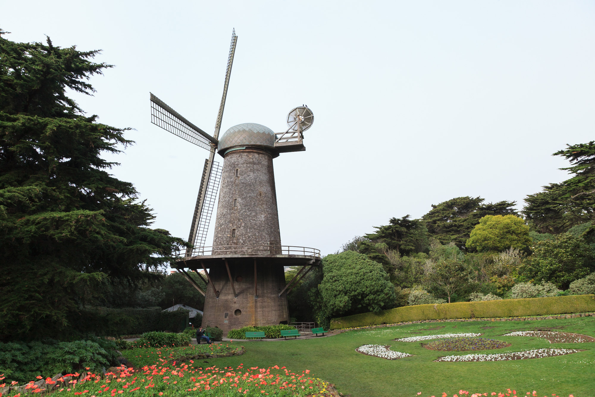 Le lendemain, nous nous rendons sur la côte Pacifique. Peu d’activité de ce côté. L’océan déroule ses rouleaux dans l’indifférence générale. Seuls quelques promeneurs profitent des embruns. Nous pique-niquons en gardant un oeil sur les mouettes et les corbeaux qui se regroupent non loin de nous. Ici, tout est calme. San Francisco est tourné vers sa baie mais absolument pas vers l’océan. Nous revenons vers la ville en empruntant les allées du Golden Gate Park. On y trouve des moulins au milieu de parterres de fleurs. On se croirait en Hollande.