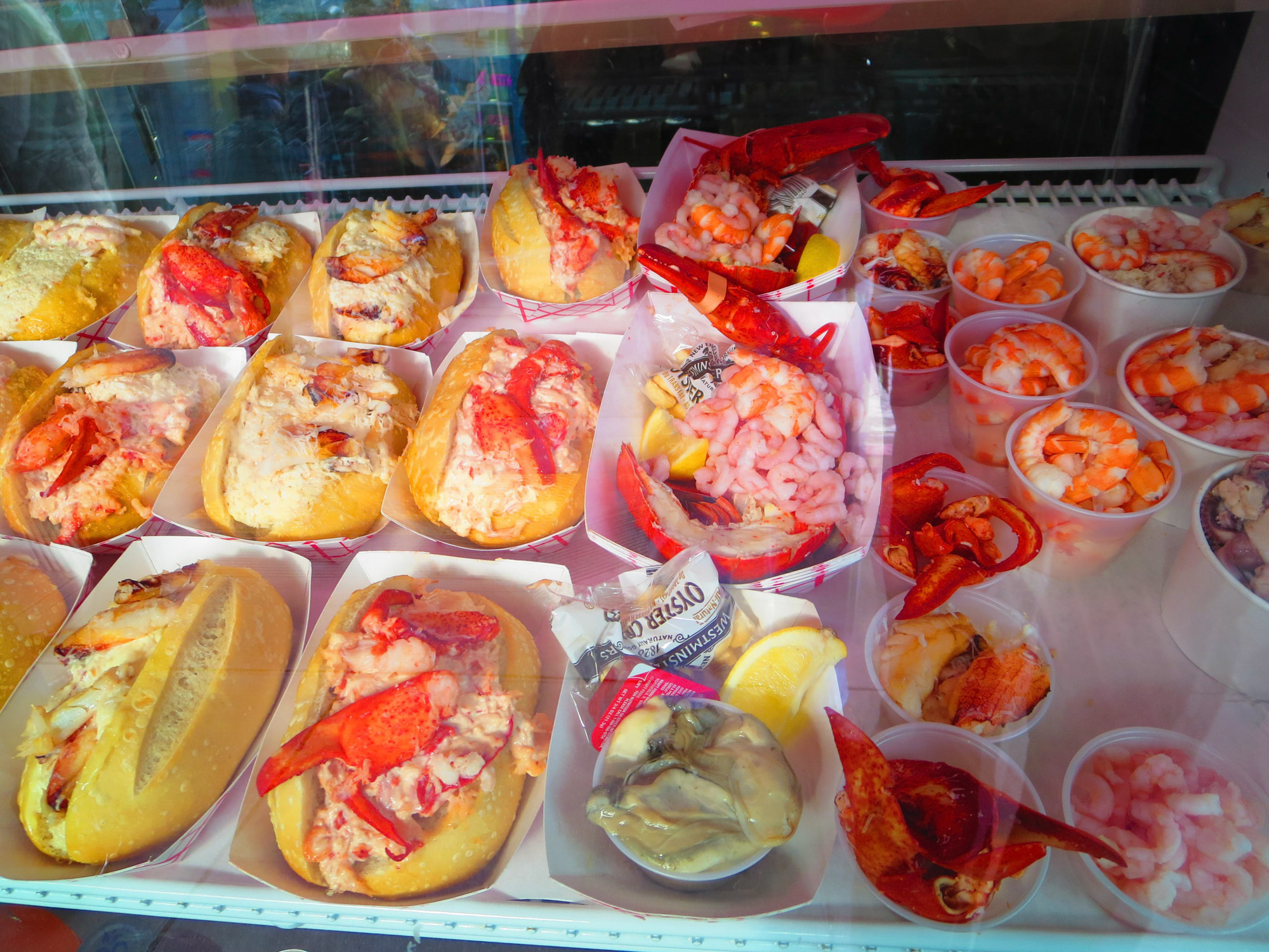 Nous passons devant la marina où hivernent yachts et barcasses plus modestes. Nous atteignons Fishermen Wharf, les anciens docks qui ont été reconvertis en quartier touristico-chicos. Boutiques de souvenirs voisinent avec restaurants de fruits de mer, épiceries fines et boulangeries branchées. C’est un plaisir de se balader dans le coin, la narine frémissante aux odeurs de pain frais et de poissons grillés. Le soleil qui s’est levé beigne le tout d’une douce lumière. Des gargotes vendent de très appétissants sandwichs au crabe, des assortiments de produits de la mer (moules, calamars, crevettes, araignées…) servis dans des petites barquettes et la spécialité du coin, de la soupe de palourde directement versée dans le creux d’une miche de pain. Pas besoin de saucer, vous pouvez manger la soupe et la soupière !