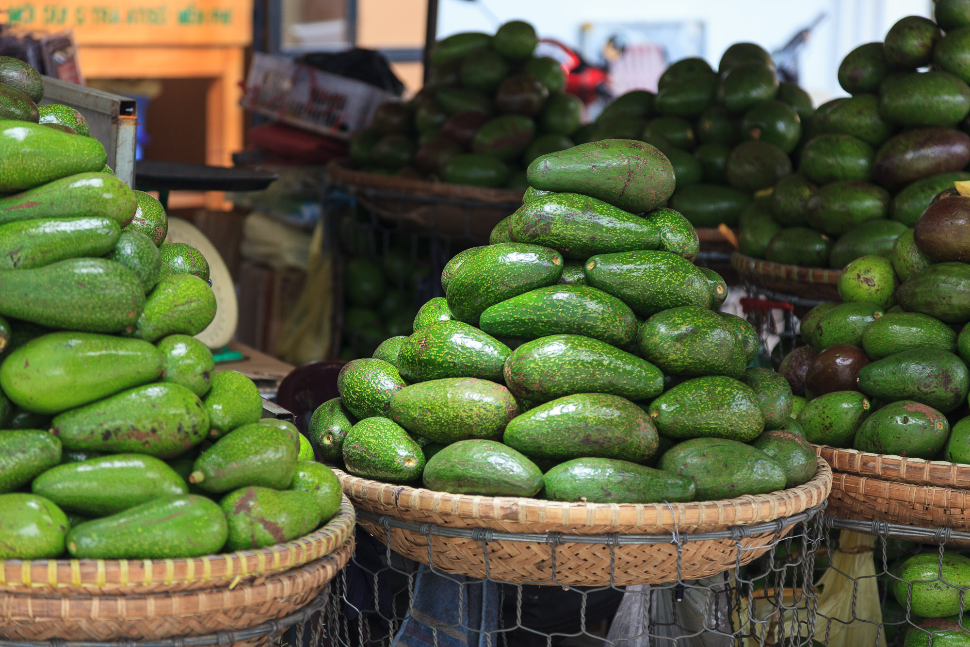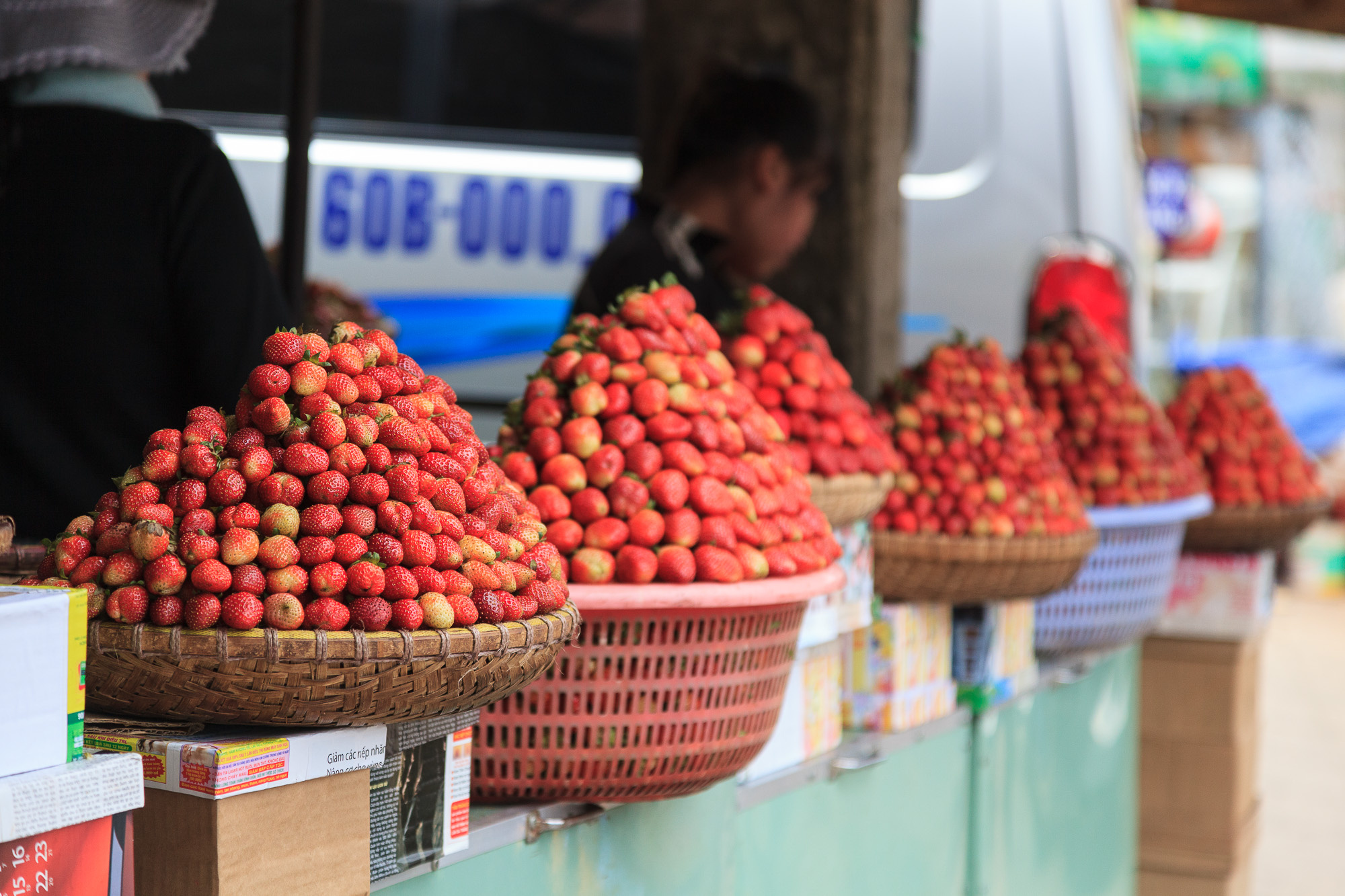 Aujourd’hui, on a plutôt l’impression d’être à Almeria: les alentours immédiats de Dalat sont recouvert de serres bâchées de plastique bleu ou blanc. Les agriculteurs profitent du climat plus frais pour cultiver fleurs, fruits et légumes qui ne poussent pas dans les plaines surchauffées. Les collines alentours sont attaquées au Caterpillar pour créer des terrasses artificielles propices à l’installation des cultures. Sur le marché de Dalat, on trouve effectivement des denrées que nous n’avons pas vues ailleurs en Asie: entre autres, des fraises (qu’on utilise pour produire une confiture locale bien trop cuite) et des avocats. La région produit même du vin…