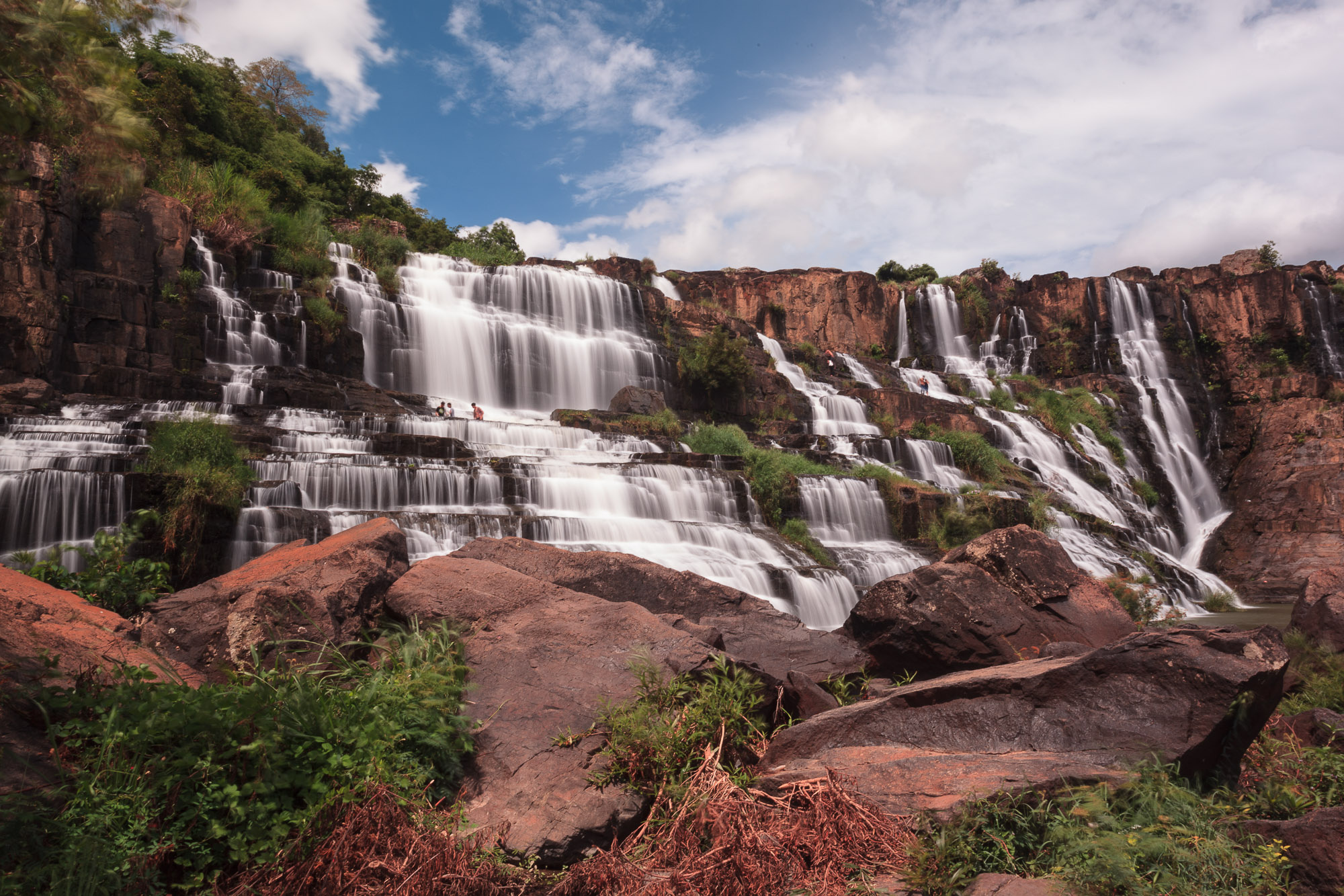 Nous nous enfonçons dans la campagne pour débusquer les fameuses chutes d’eau. Celles de Pongour sont très impressionnantes. Elles s’écoulent sur plusieurs niveaux le long d’une falaise. Elle nous procurent aussi rafraichissement en cette journée extrêmement chaude.