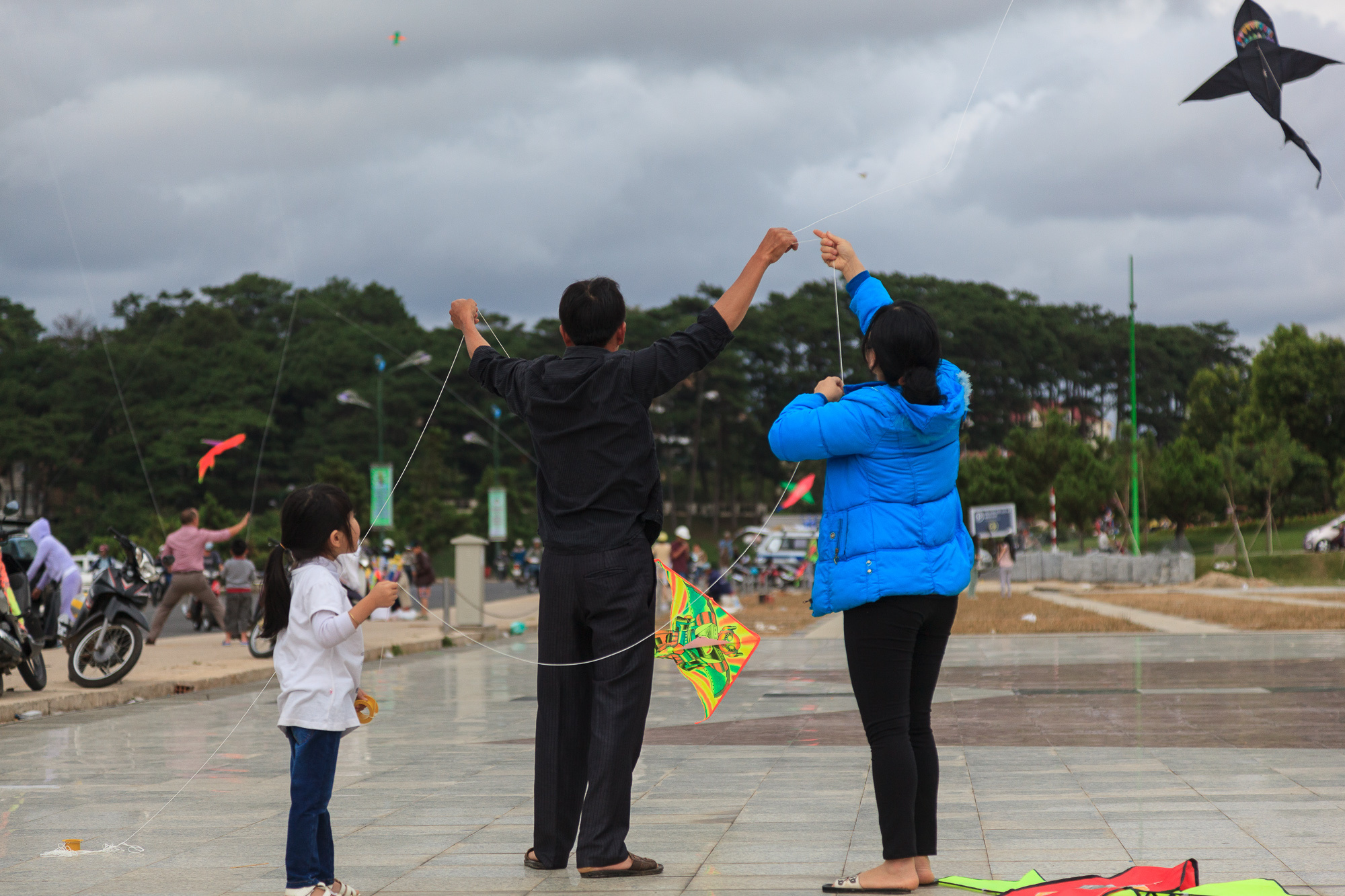 Nos promenades dans la cité nous permettent de découvrir la passion des Vietnamiens pour les cerf-volants. Sur une esplanade au bord du lac, des dizaines de personnes, jeunes et moins jeunes, s’adonnent dans la joie et la bonne humeur à cette discipline. Les vendeurs font choux gras de leurs cerf-volants. On en voit flotter des dizaines dans le ciel: les uns en forme de requin, d’autres arborent des couleurs fluo à la mode, certains possèdent de très longues franges qui font de jolis mouvements dans les airs ou s’emmêlent avec les cerf-volants voisins lorsque l’engin est rendu fou par une rafale.